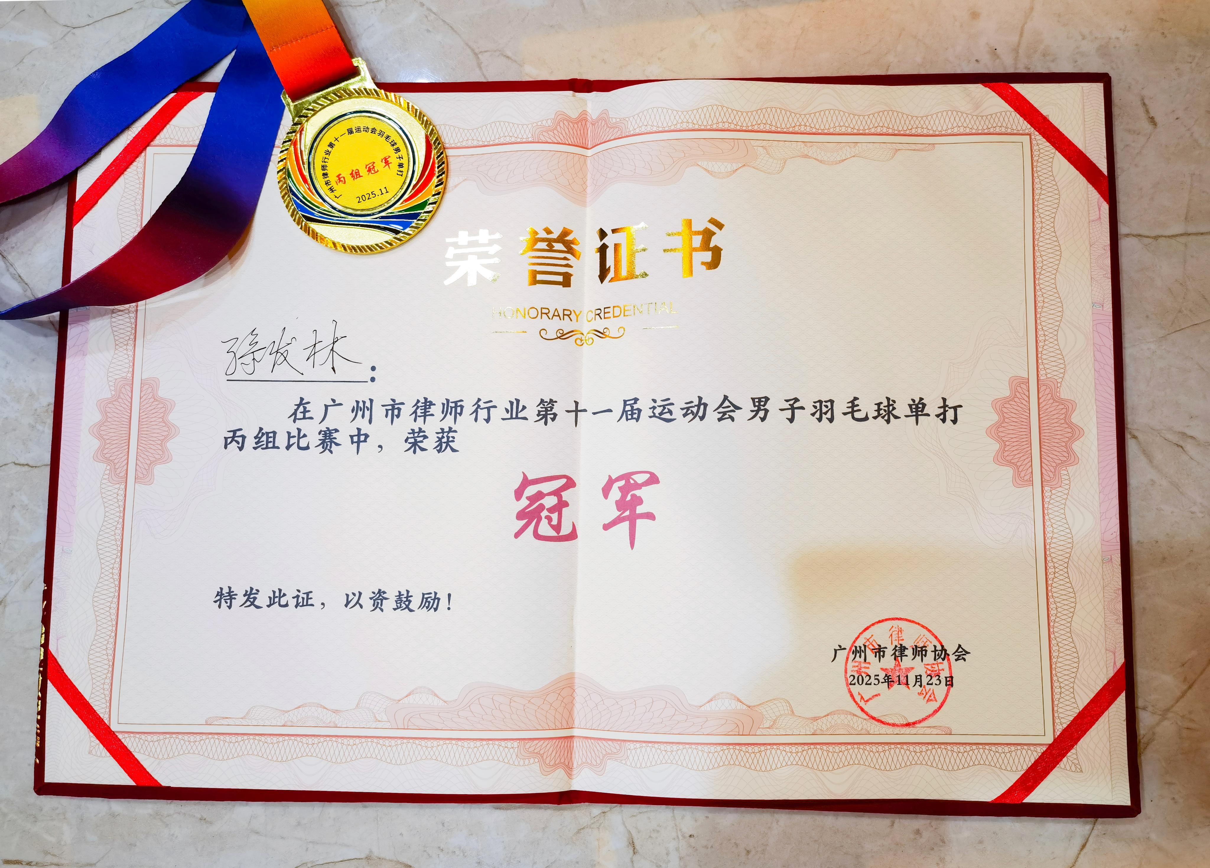 华进文体 | 华进律师积极参与广州市律师行业第十一届运动会羽毛球个人单项比赛并斩获佳绩