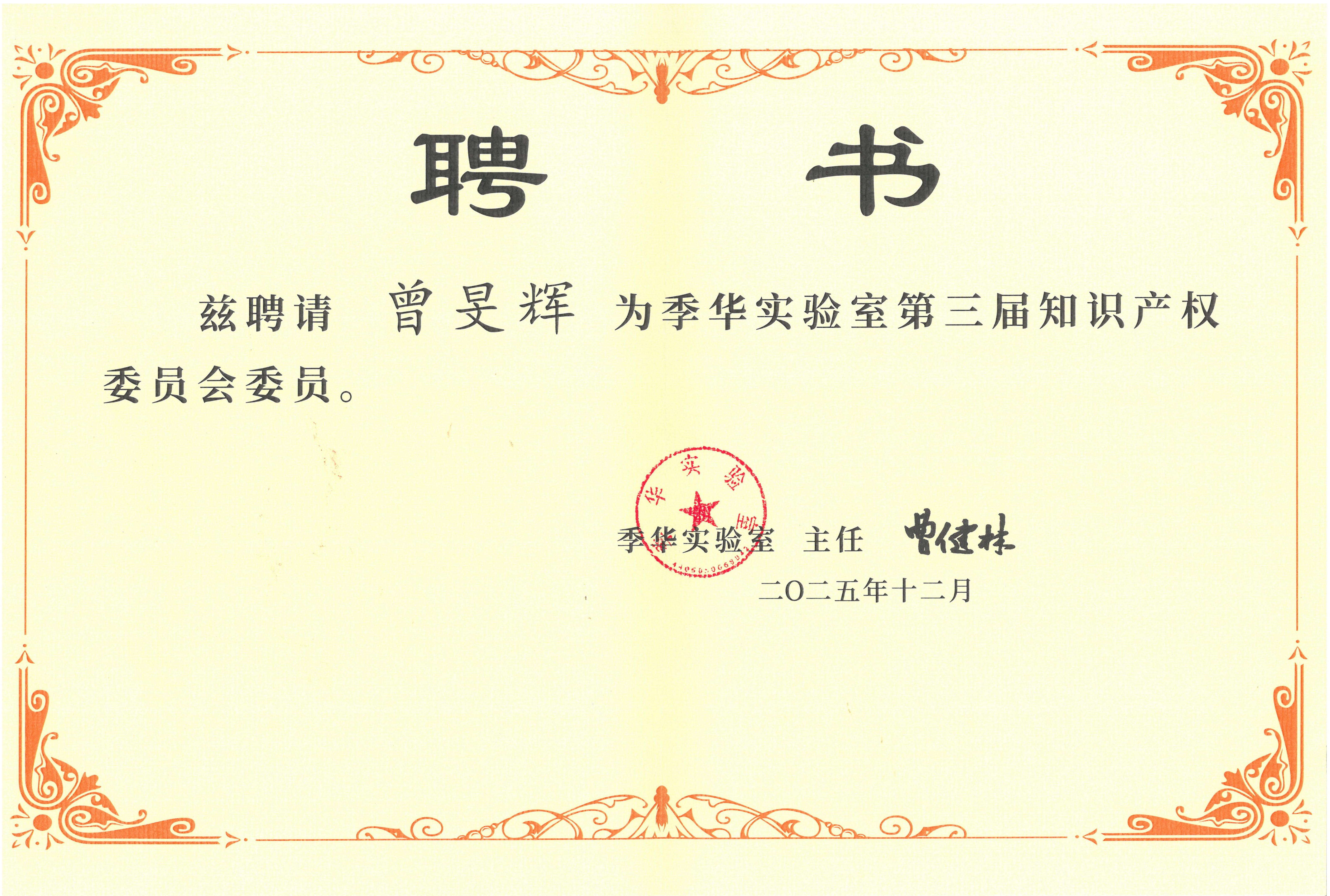 华进喜讯|华进曾旻辉律师续聘季华实验室第三届知识产权委员会委员