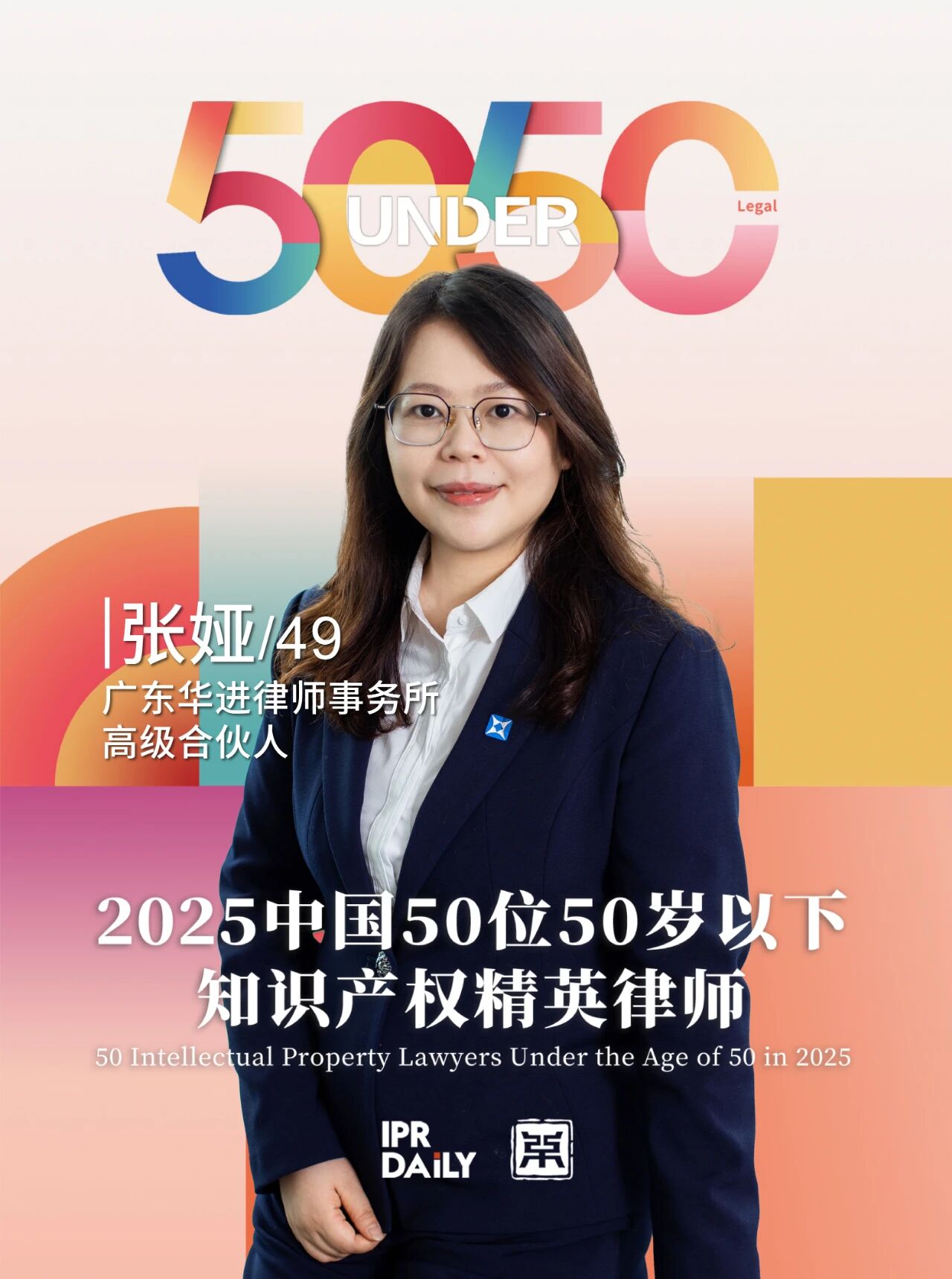 华进喜讯|华进张娅律师荣登2025“中国50位50岁以下知识产权精英律师”榜单