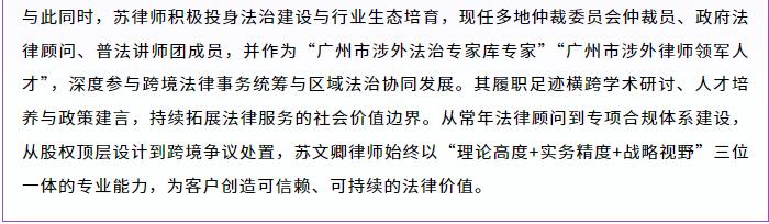 此次荣登律新社2025年度风云榜“客户力荐律师(粤港澳)20佳”,是客户信任与行业认可的双重鼓励。未来,苏文卿律师将继续深耕粤港澳大湾区公司商事法律服务领域,以学术赋能实务,为企业提供更精准、高效的法律解决方案。而华进所也将以此次获奖为契机,持续搭建优质律师成长平台,助力更多优秀律师脱颖而出,为粤港澳大湾区法治建设贡献更多力量。