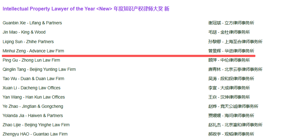 华进喜讯|曾旻辉律师荣获 2026 ALB中国法律大奖“年度知识产权律师大奖”提名